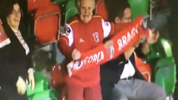 بالفيديو - حركة غير أخلاقية من مشجعة عجوز لسبورتنغ براغا البرتغالي!