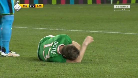 Daryl Murphy is on for the injured Kevin Doyle. Let's hope the injury to Doyle isn't too serious. #IREvSWI https://t.co/AHAgndBv1H— Setanta Sports (@SetantaSports) ٢٥ مارس، ٢٠١٦