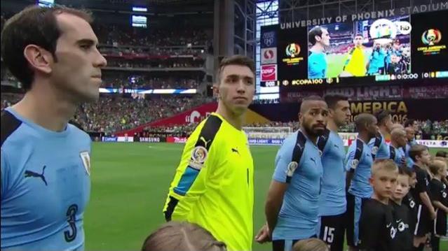 La cara de los jugadores Uruguayos lo dice todo. Les pusieron el himno de Chile a los Uruguayos. Papelon. pic.twitter.com/756AliPeEP— Esteban (@EstebannLT) ٦ يونيو، ٢٠١٦