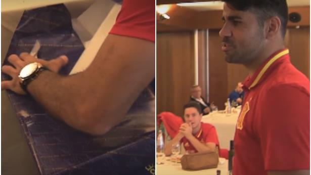 بالفيديو - نجوم اسبانيا قدموا لكوستا هدية مميزة وزنها كيلوغرام واحد فقط.. احتفالاً بعيد ميلاده