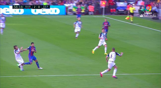 تناقلت وسائل الإعلام أمس لقطة قام فيها مهاجم برشلونة ومنتخب الأوروغواي لويس سواريز بالتعدي على لاعب ديبورتيفو لاكورونا عن طريق "لكمة خطّافية" خلال المباراة التي جمعت الطرفين في الدوري الإسباني أمس.