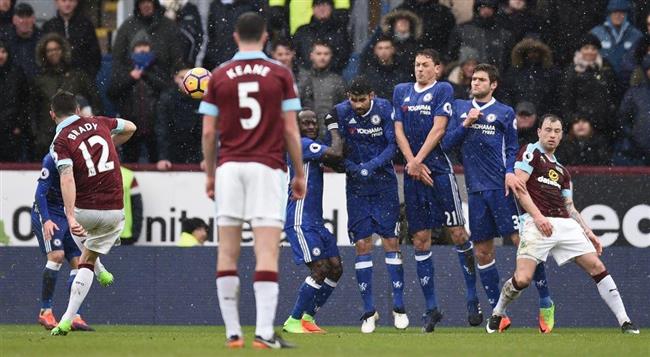 Goalna - تمكن الفريق المتواضع بيرنلي على أرضه من إيقاف قطار متصدر الدوري الإنجليزي الممتاز تشيلسي بشكل غير متوقع حينما تمكن من انتزاع نقطة التعادل من فم الأسد في المباراة التي أُجريت بينهما قبل قليل في البريميرليغ وأعطت شيئاً من الأمل للمنافسين على لقب الدوري .