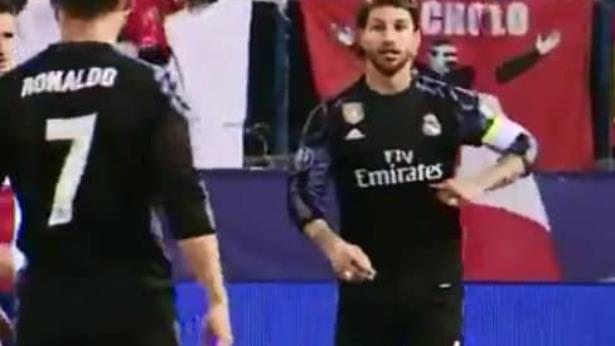 إنتشر فيديو تحليلي على مواقع التواصل الإجتماعي للإسباني سيرخيو راموس قائد ريال مدريد وهو يطلب من زميله البرتغالي كريستيانو رونالدو أن يمثل حتى يتسبب بطرد أحد لاعبي أتلتيكو مدريد.