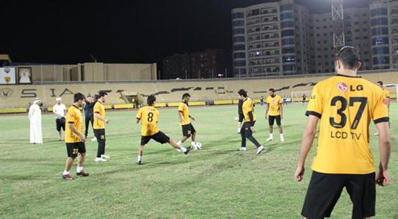 أمام طلال العامر الذي لم يخوض التدريبات لإصابته في الرأس فقد كان مختلفا بعض الشيئ عن زملائه لأنه صرح بأن الفوز في متناول يديهم لامحالة وأنه سيكون جاهزا في لقاء الغد .