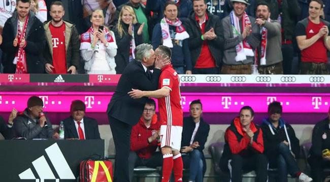 أخمد الإيطالي كارلو أنشيلوتي، مدرب بايرن ميونيخ، بقبلة، نار نشوب أزمة محتملة مع الفرنسي فرانك ريبيري، إثر استبداله في مباراته ضد بوروسيا دورتموند، ضمن المرحلة 28، للبوندسليغا.